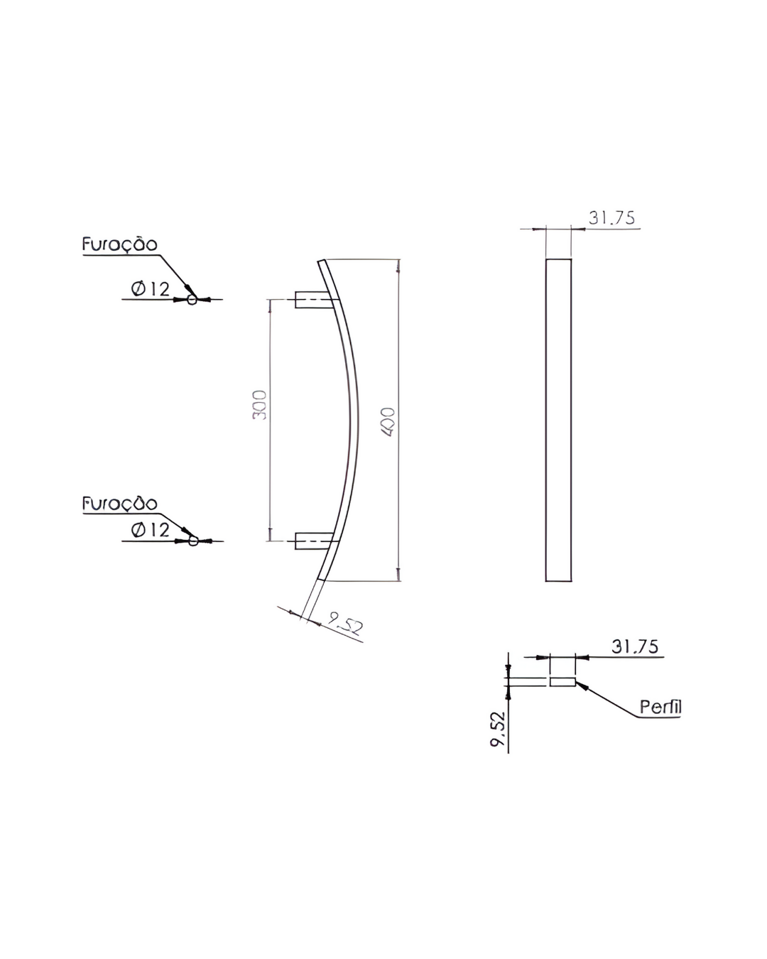 Puxador curvo elegante para portas de madeira e alumínio